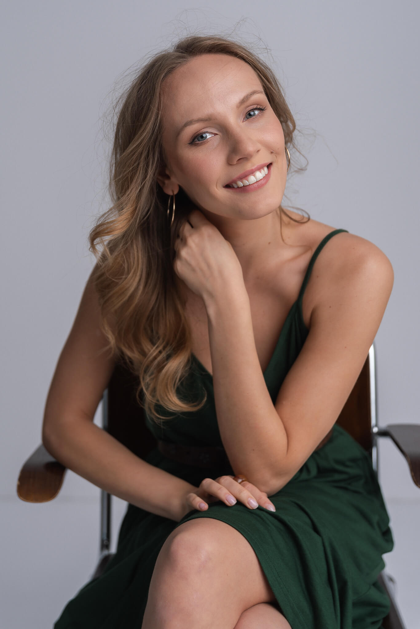 Sesja z Mają była niewątpliwie wyjątkowym doświadczeniem. Jej obecność w studiu przyniosła delikatne ciepło, które natychmiastowo wypełniło przestrzeń. Od samego początku czuć było coś magicznego, coś, co wydobywało najpiękniejsze aspekty jej osobowości na światło dzienne.